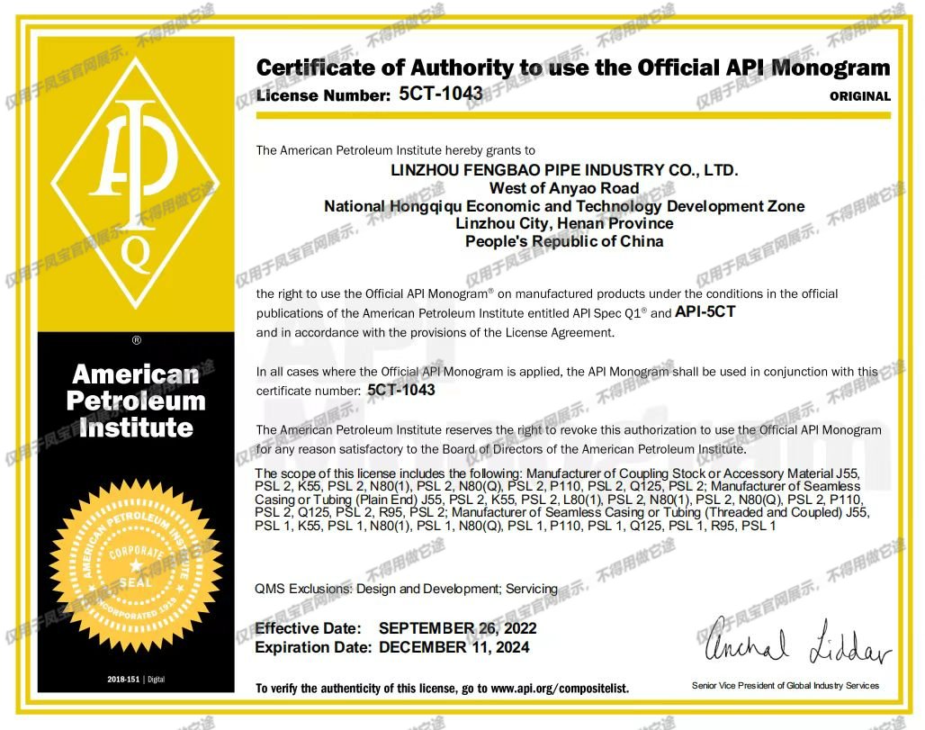 美国石油协会API官方会标使用授权证书